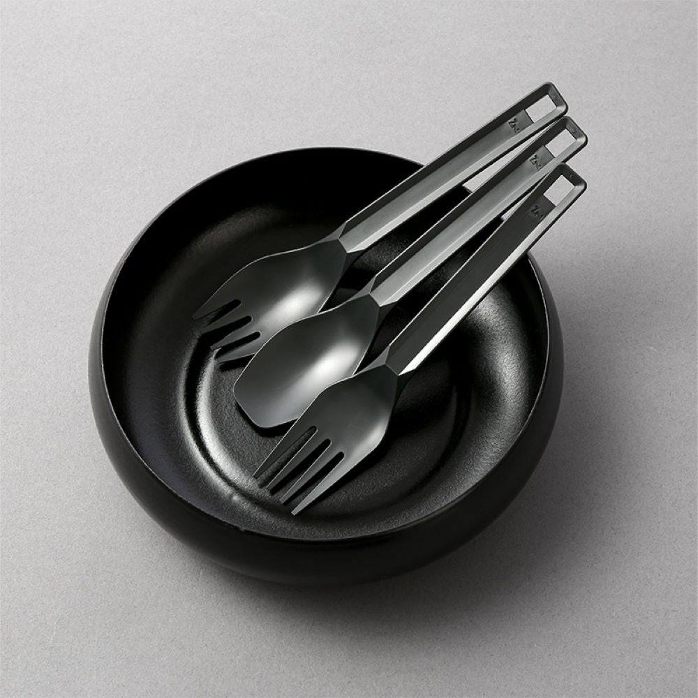 刺す、すくうなど、求められる全ての機能を徹底追求した樹脂カトラリー。金属のお皿が多いアウトドアには、接触音が出ない樹脂カトラリーが最適。