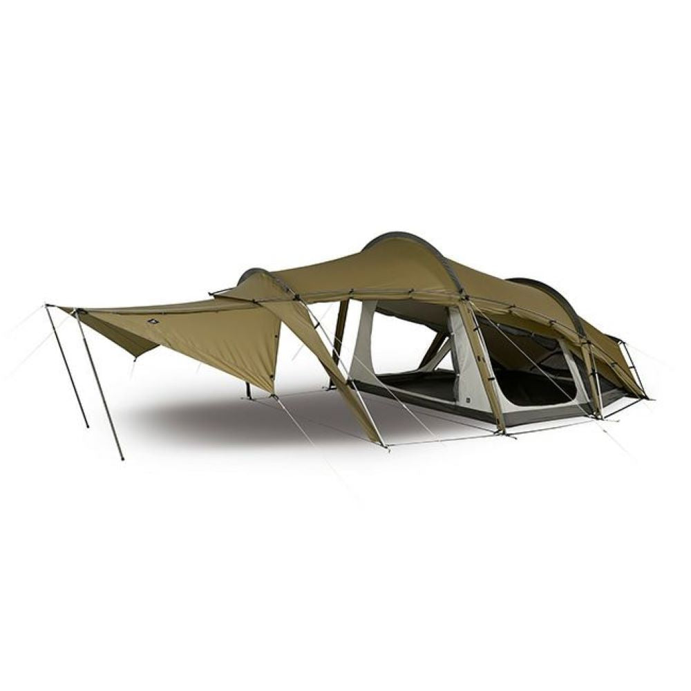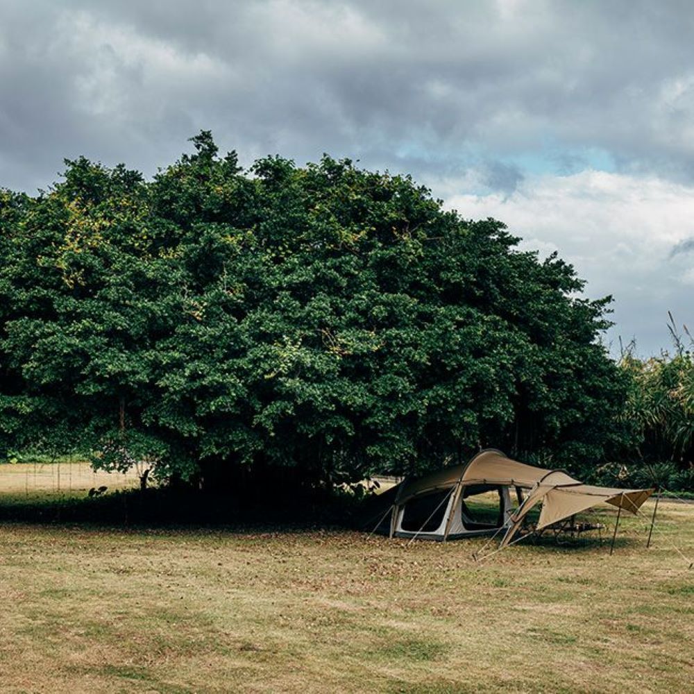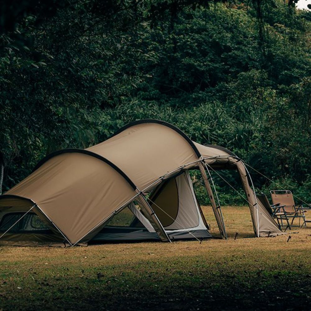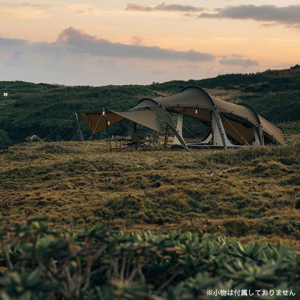 大開口のサイドパネルと、5パターンに可変するフロントパネルを備えたハイスペックテント。