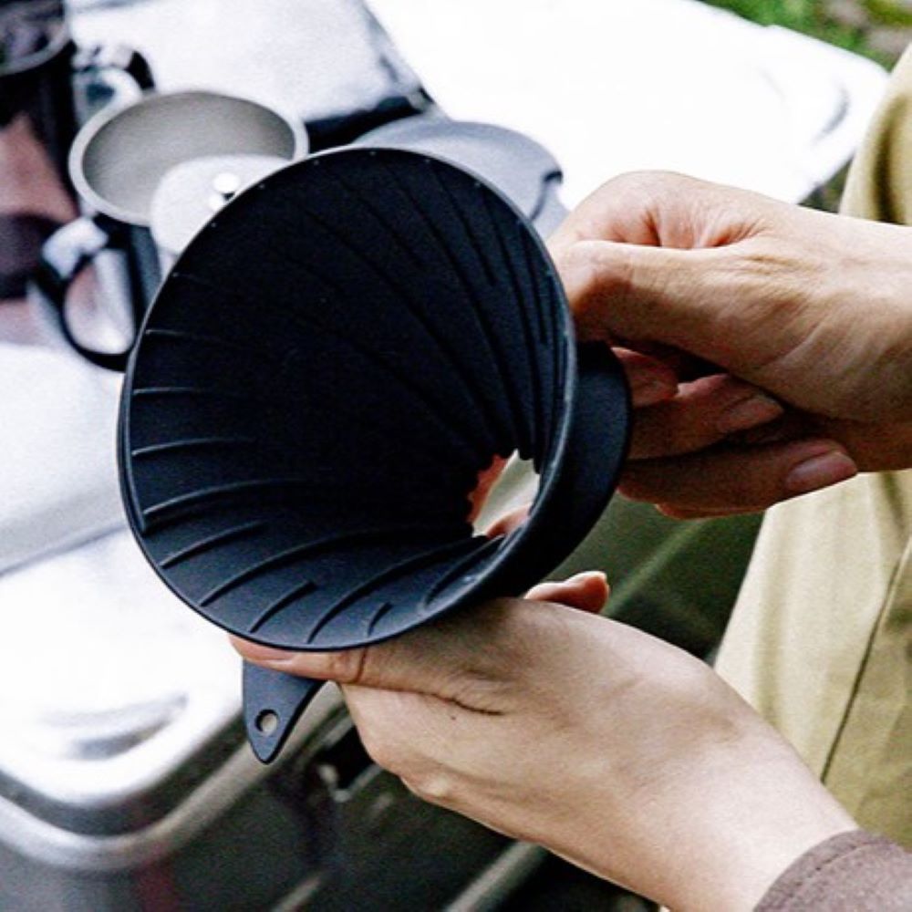 折りたたんでコンパクトに持ち運べるアウトドア用ドリッパー。